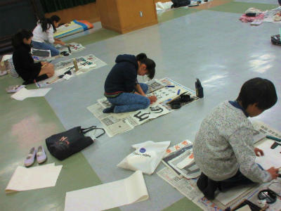 冷え込む体育館の中で、最後の作品作りに取り組みました。