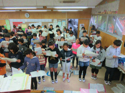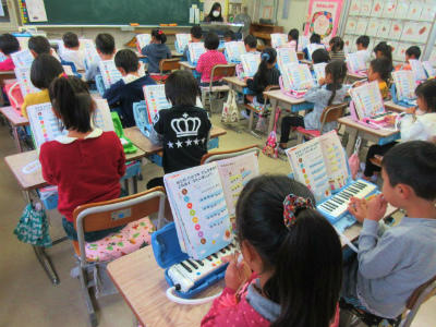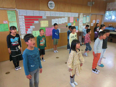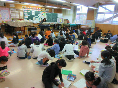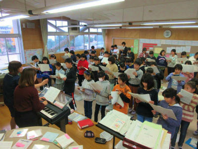 4・5・6年生、そして担当の先生たちは、やる気満々。音楽室の空気が薄く感じられました。