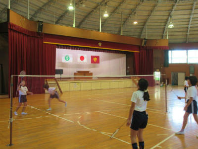 卓球クラブと並んで根強い人気を誇るバドミントンクラブ。丸い体育館を独占ですね。
