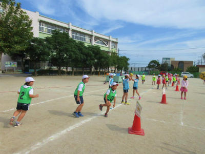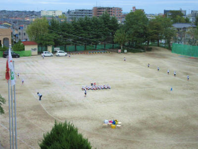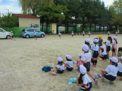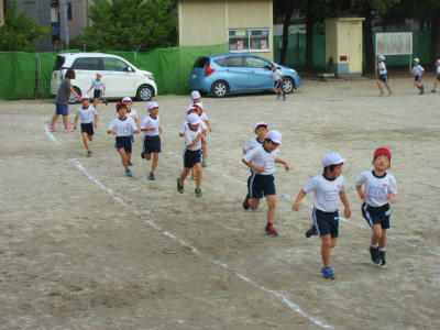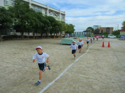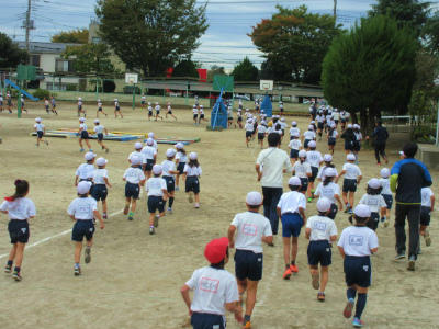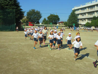 今日も気持ちのいい朝です。真っ青な秋空の下、元気に運動するわかたけっこです。