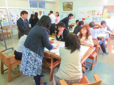 1年生の国語の授業を全職員で参観し、授業研究会を行いました。