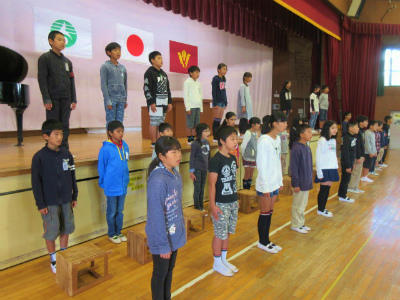 代表で出場する6年生が、体育館で最後の練習をしました。みんなで心を一つにしてがんばってください。