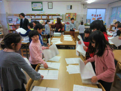 昼休み、6年生が会場の椅子並べなどを手伝ってくれました。