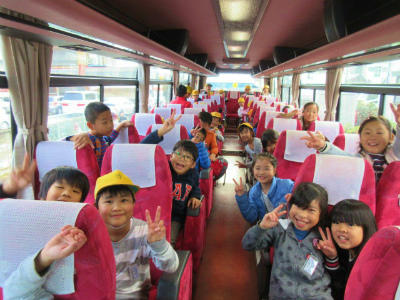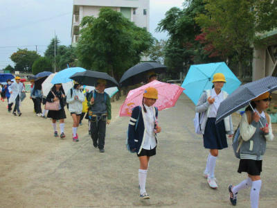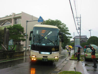 6年生が、会場の市民文化会館に向けて出発しました。あいにくの雨となってしまいましたが、日頃の練習の成果を発揮してきてください。