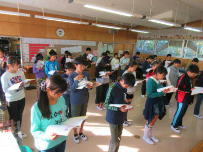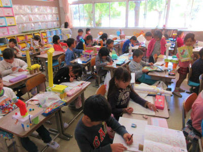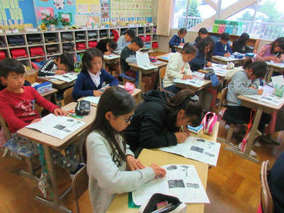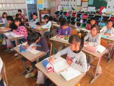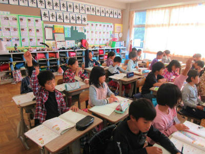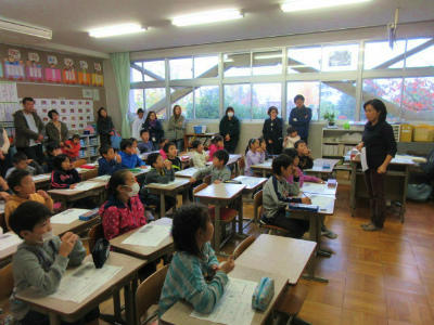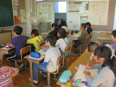 心地よい気温の教室で、4年生と1年生が、真剣に授業を受けていました。