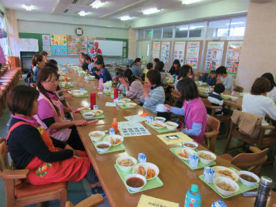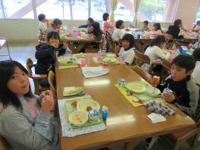 3年生と5年生が、わかたけホールで仲良く会食をしました。