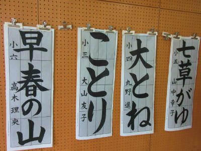 6年生が書いているのは「早春の山」という四文字です。文字の大きさのバランスが、特に難しいようですね。