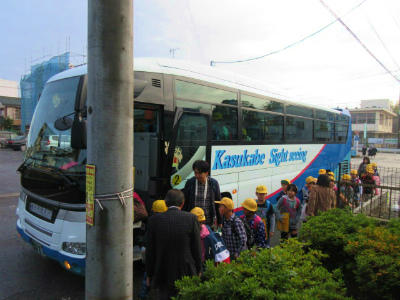 訪問するのは、春日部市場、桃屋春日部工場、庄和総合公園、UKプランニングです。