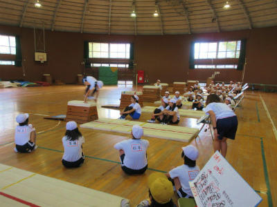今日は「かかえこみとび」にチャレンジです。それぞれがしっかりと自分のめあてを持って、技を磨いていました。