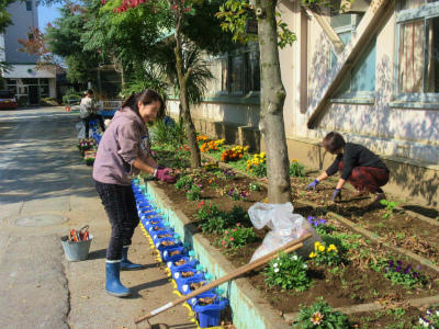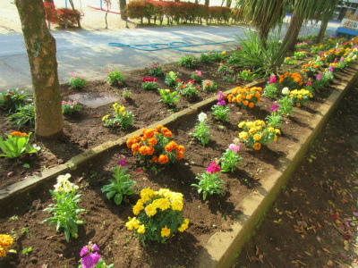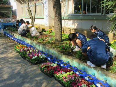 PTA厚生部の皆さんが、新しい花苗を植え付けてくださいました。