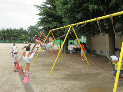 1学期最後のわんぱくタイムです。今日も、曇り空ながら実施することができました。