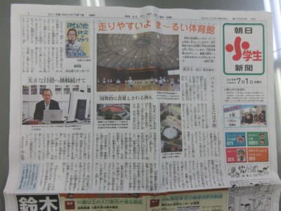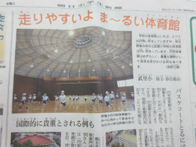 7月1日付の朝日小学生新聞の一面に、武里小の「まーるい体育館」についての記事が掲載されました。