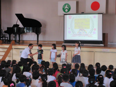 今年度は全体的に好成績だったので、たくさんの児童が表彰されました。