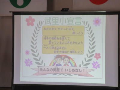 いじめ0を目指し、全校児童で「武里小宣言」を作りました。
