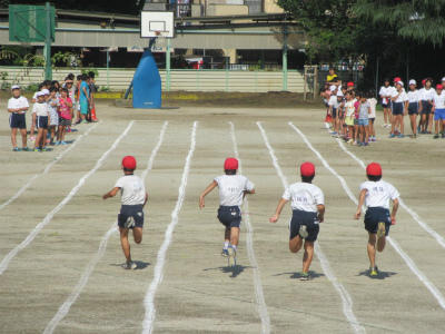 5年生が運動会のリレーの選手を決めるために、100mを走っていました。