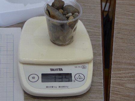 プリンカップ1杯にいろいろなものを入れて重さを量りました。