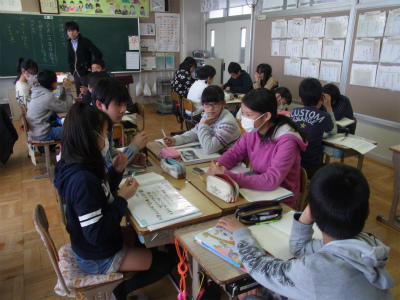 「海の命」の主題について、グループごとに話し合っていました。この物語を学習しているということは、卒業が近づいていることを意味します。