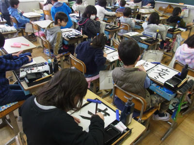 毛筆習字が始まって約1年。すっかり筆の扱いにも慣れてきたようです。