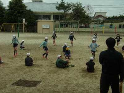 その前に、少しでも子どもたちとの楽しい思い出をつくろうと、担任の先生が朝から子どもたちと一緒に遊んでいます。