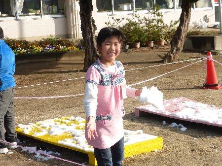 子どもたちのなかには、雪玉を手にしている子どもたちもいます。