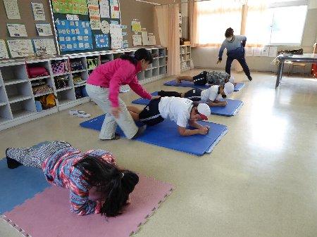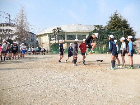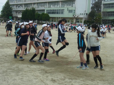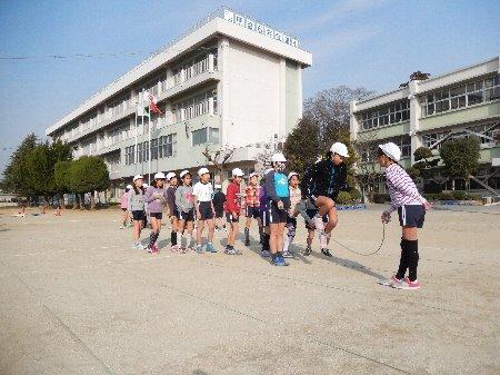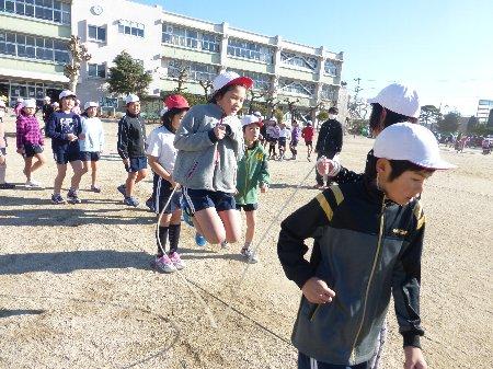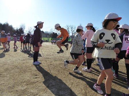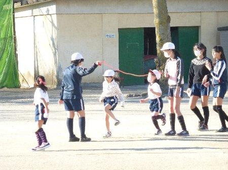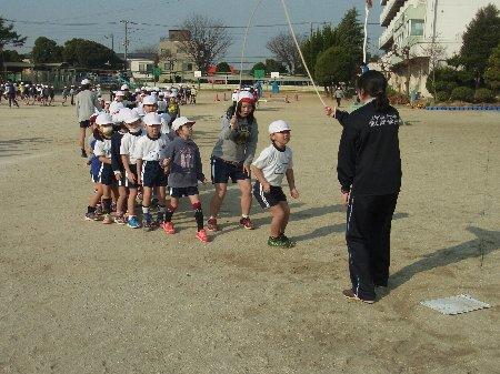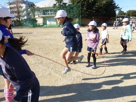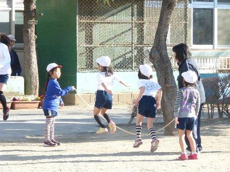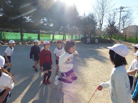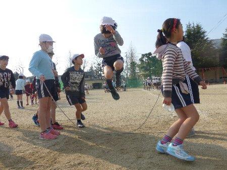 なわとびでいろいろな技にチャレンジしています。交差とびは難しいようですね。