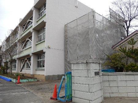 しかし、朝礼台やなわとび練習台などの上や日陰にはまだ残っています。