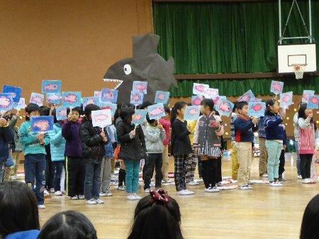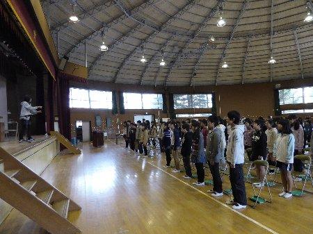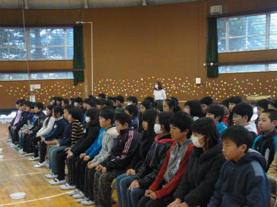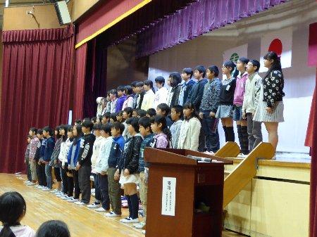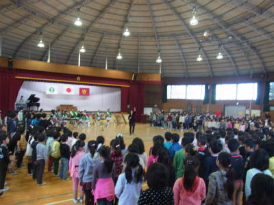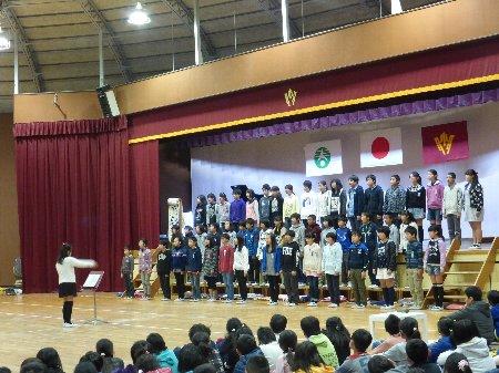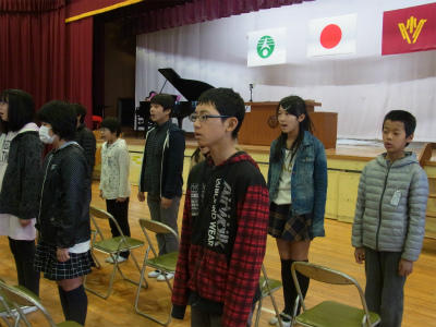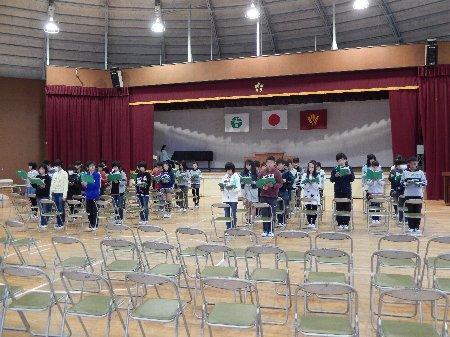今年度最後の音楽朝会です。全校合唱で校歌と「ありがとう」を歌いました。