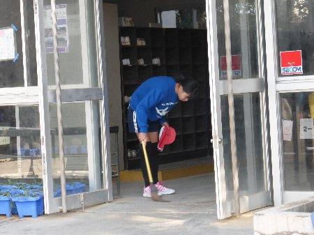 児童用玄関の掃き掃除をしてくれているのは、環境委員会の子どもたちです。