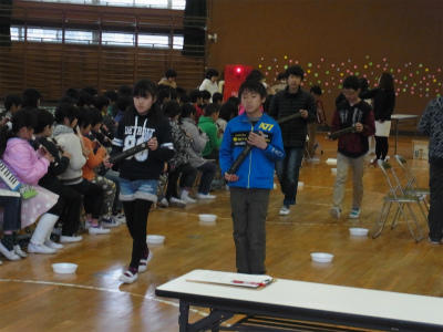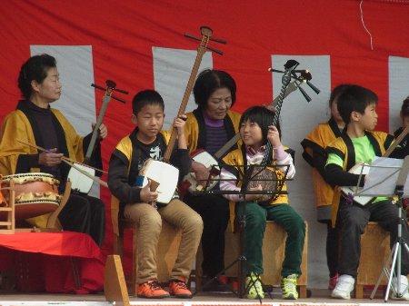 最初に登場したのは、放課後子ども教室「どようひろば」の和楽器教室で学んだ子どもたちです。