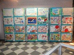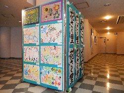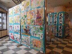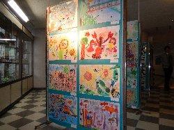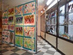 春日部市教育センターの2階、マイギャラリーで武里小学校の子どもたちの作品が展示されています。