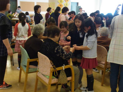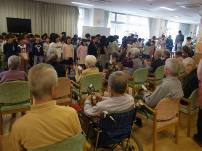 利用者さんや入居者さんの中には、目に涙を浮かべながら「よかったよ。」「上手だね。」と声をかけてくださる方もいらっしゃいました。また、別れ際には自然に握手をしてお別れを惜しむ子どもたちもいました。3年生にとっては、大変貴重な体験をさせていただきました。
