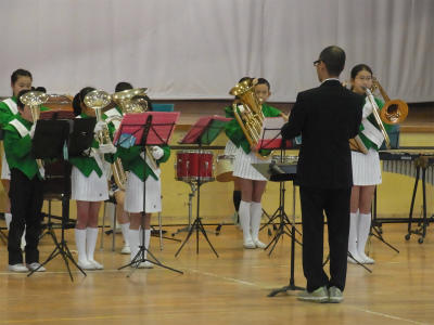 全校合唱の後には、金管バンドクラブが今年度最後の演奏を行いました。曲は、「サウンド・オブ・ミュージックメドレー」「パイレーツ・オブ・カリビアンメドレー」の2曲です。