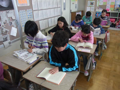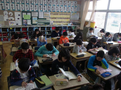 ボランティアの皆様による読み聞かせ(平成27年度)は、先週で終了しました。そこで、今日は全クラスで読書となりました。