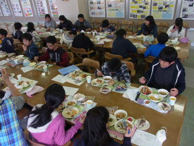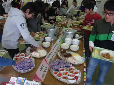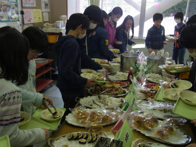 今日は、6年2組のバイキング給食です。昨日の1組の様子を見ていたので、みんな楽しみにしていたようです。残さずに、全部食べられたでしょうか。