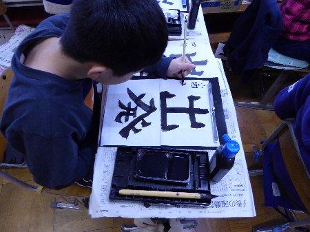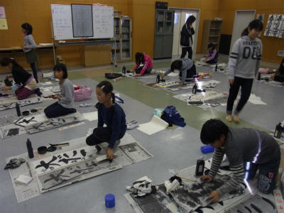 ちょうどそのころ、4階の6年生は、同じ墨と筆を使っていました。