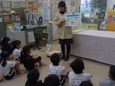 一方、1年生。今日は担任の先生による読み聞かせです。