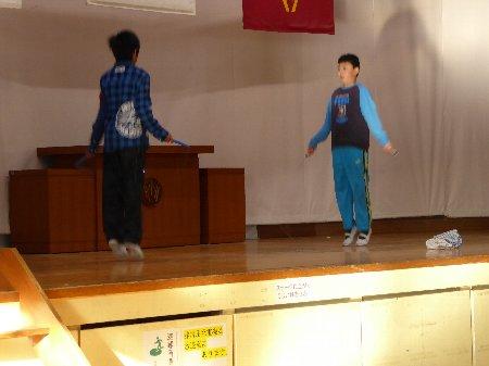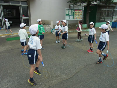 なかには、跳びなわをわすれて、「エアなわとび」の子どもたちもいるようです。