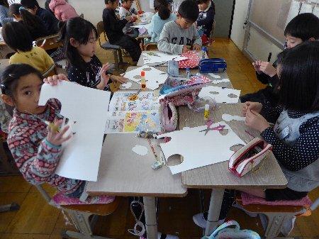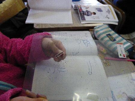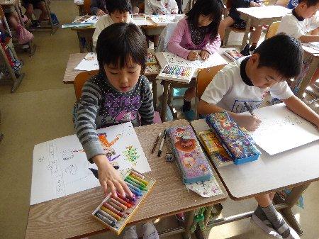こちらの1年生が真剣に書いているのは、6年生を送る会で6年生にプレゼントする絵です。