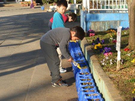 低学年の子どもたちは、「わんぱくタイム」が半そで、短パンなのでその姿で、水やりをしたり外遊びです。