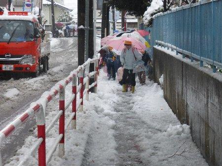 ちょうど子どもたちの登校の時間帯は目に見えるくらいの雪です。