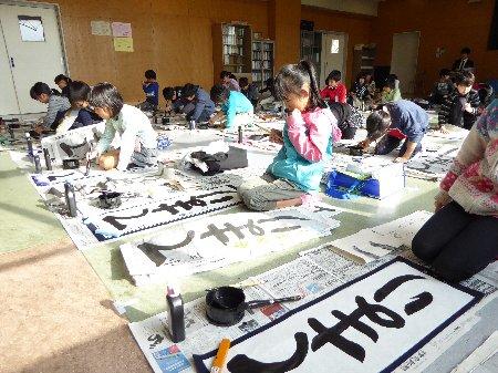 6年生全員が、体育館で一斉に練習しました。休憩時間には講師の先生に進んで質問する児童もおり、いい作品ができそうです。