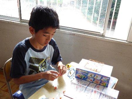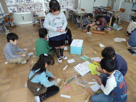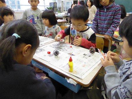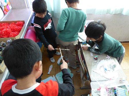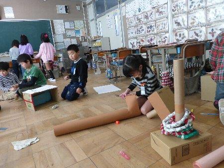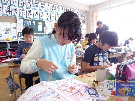 4年生は図工の時間に牛乳パックとストロー(わりばし)を使った動くおもちゃづくりです。