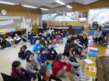 今日のボランティアさんによる読み聞かせは6組さんと1年生です。