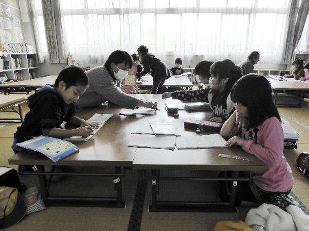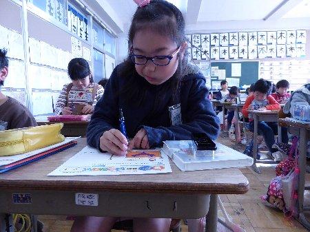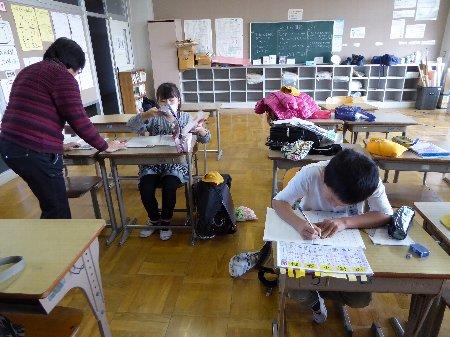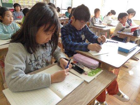 小学校最後の書き初めの競書会とあってみんな真剣です。