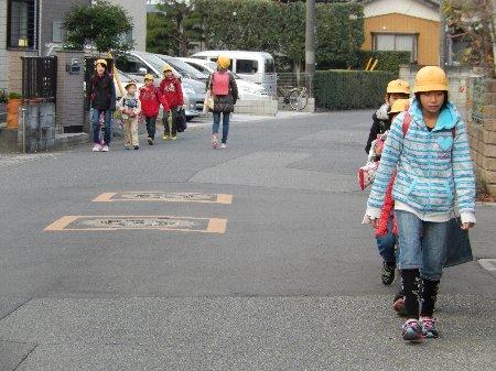 班長が一番前に、副班長が一番後ろについて、1列に並んでの登校です。
