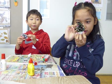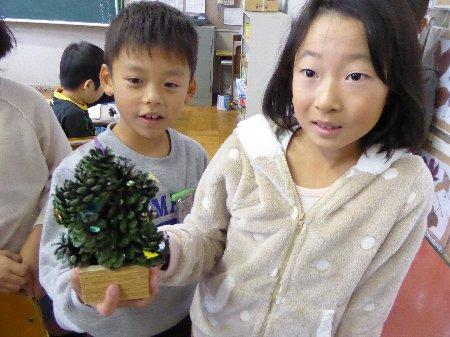 2年生が松ぼっくりで作ったクリスマスツリーを届けてくれました。