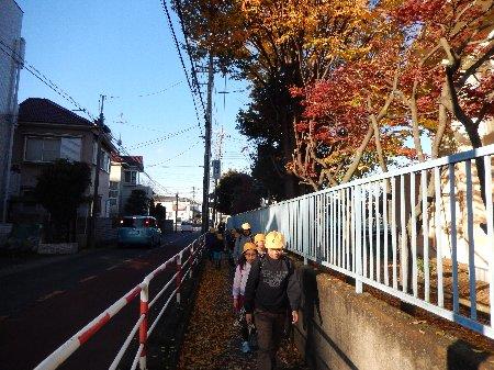 服装も、歩道の落ち葉も冬が近くまで来ていることを感じさせます。