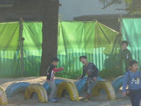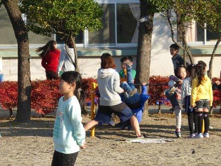 そのための校庭の東端は陰ですが、まだそんなに寒くないこともあって、子どもたちはこちらでも元気に遊んでいます。