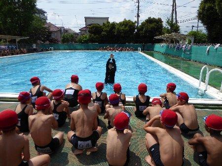 ちょっと寒い日でもプールでの授業があった子どもたち、今日のような天気を待ち望んでいました。