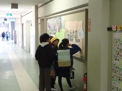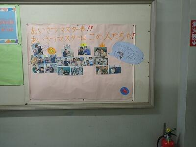校長室横の掲示板には、「あいさつパズル」完成ペアの写真が掲示されています。